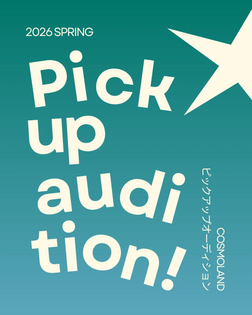 2025年10月26日 COSMOLAND K-POP AUDITION & WORKSHOP開催決定!2025年10月26日(日)、COSMOLANDは、ネットワークに属する60社以上の韓国芸能事務所が参加する連合オーディションと、プロのサポートが受けられる特別…