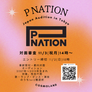 オーディション当日はボーカル/ラップ/ダンス/のうち1つを選択して披露していただきます。